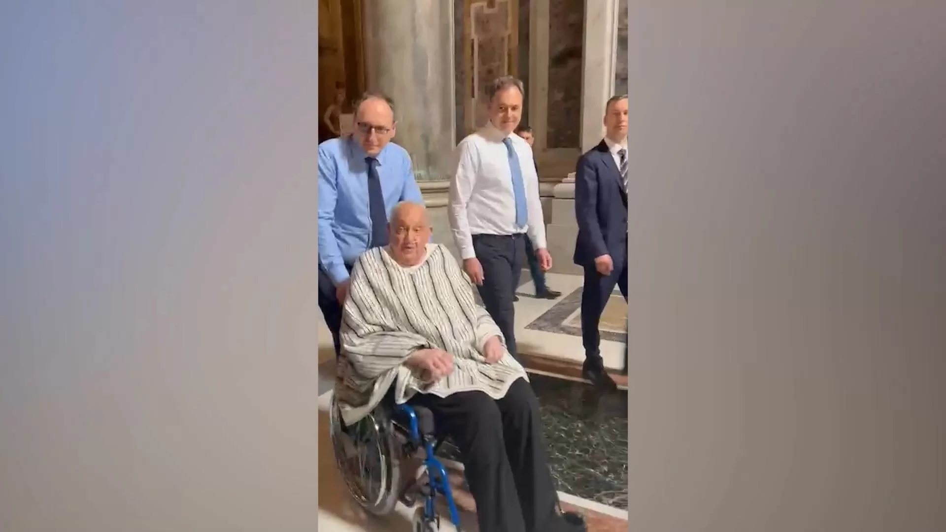 Inicio » El papa Francisco recepción la basílica de San Pedro en camiseta y con un poncho